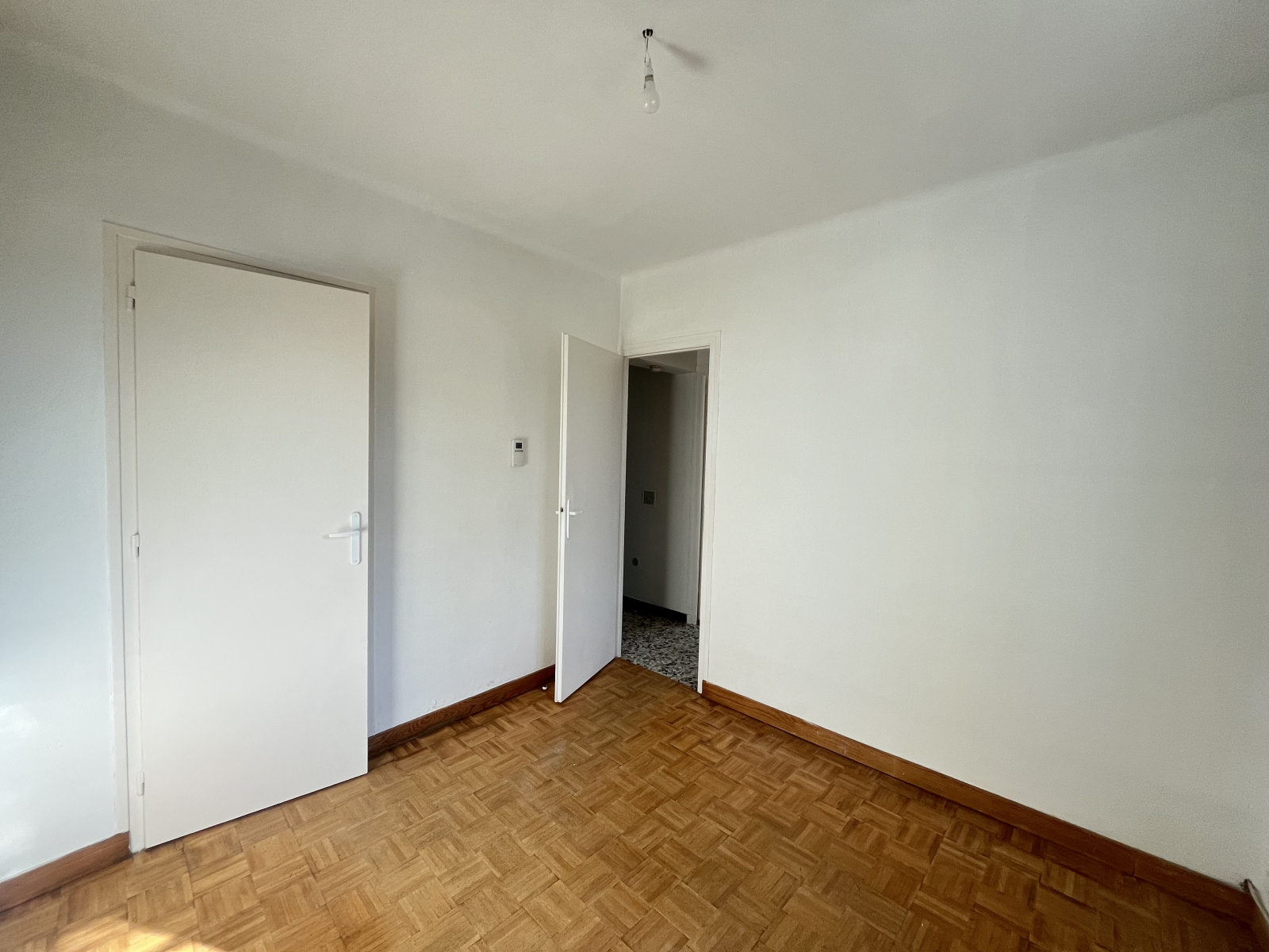 À l’étage, une troisième chambre offre un espace supplémentaire.