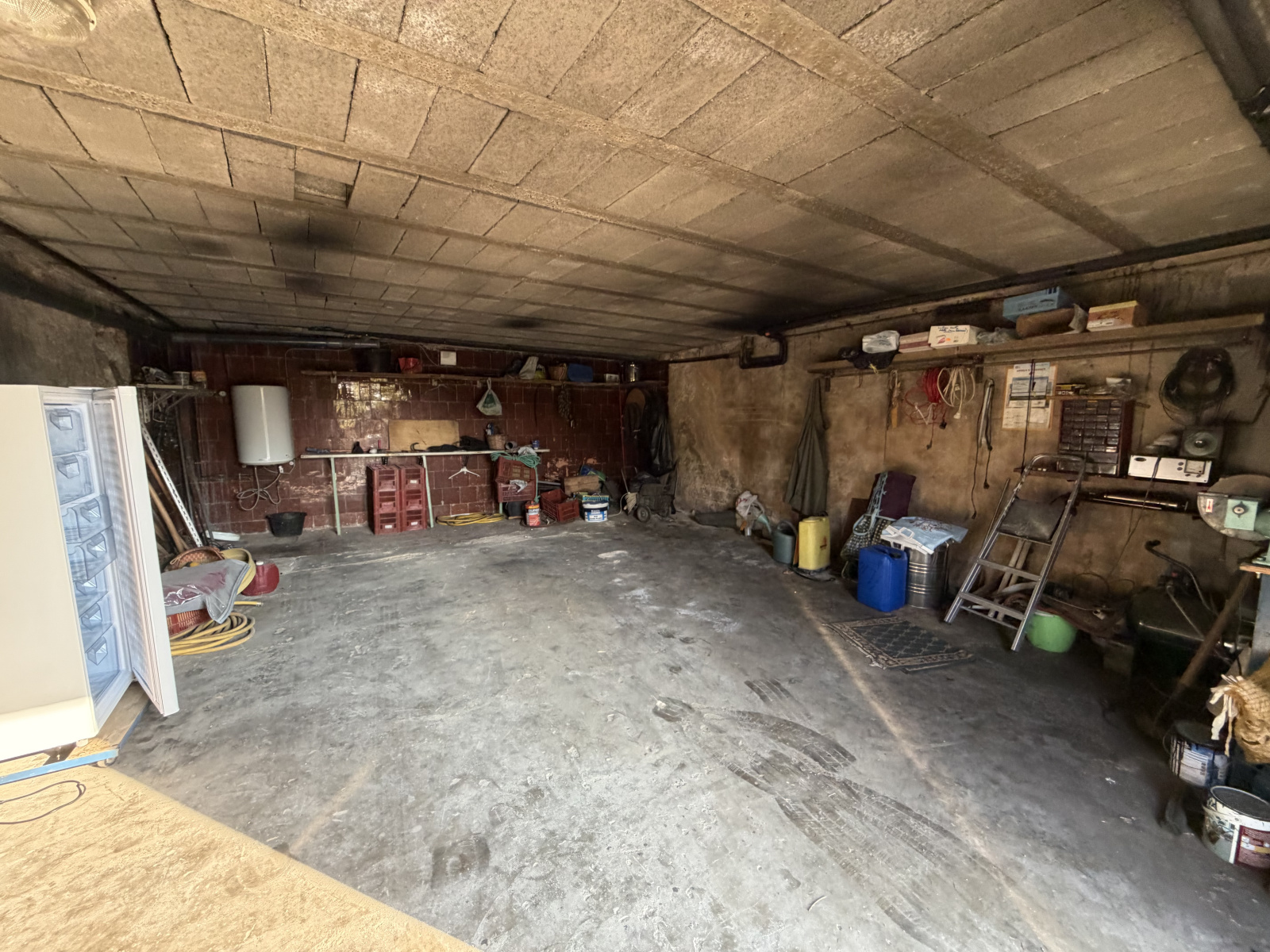 Le rez-de-chaussée côté rue bénéficie d’un grand garage de 42 m², idéal pour stationner plusieurs véhicules ou aménager un espace atelier, ainsi que d’une cave attenante.