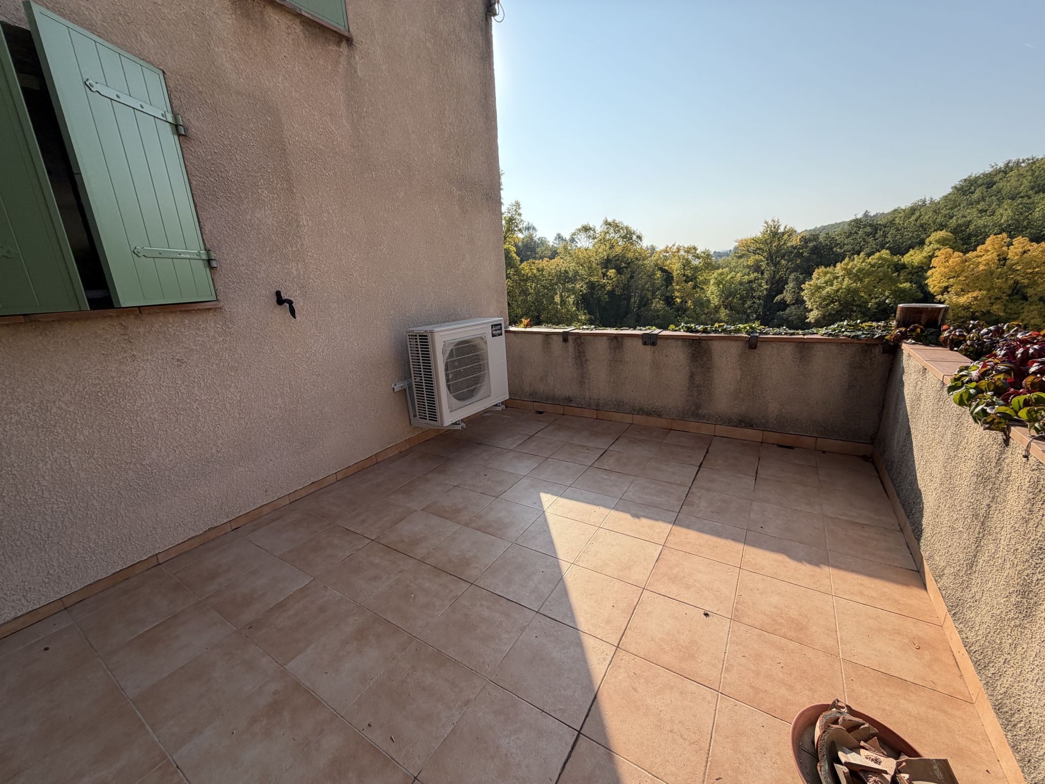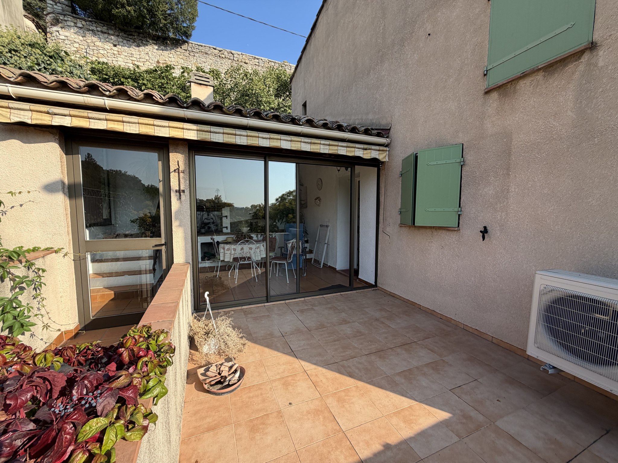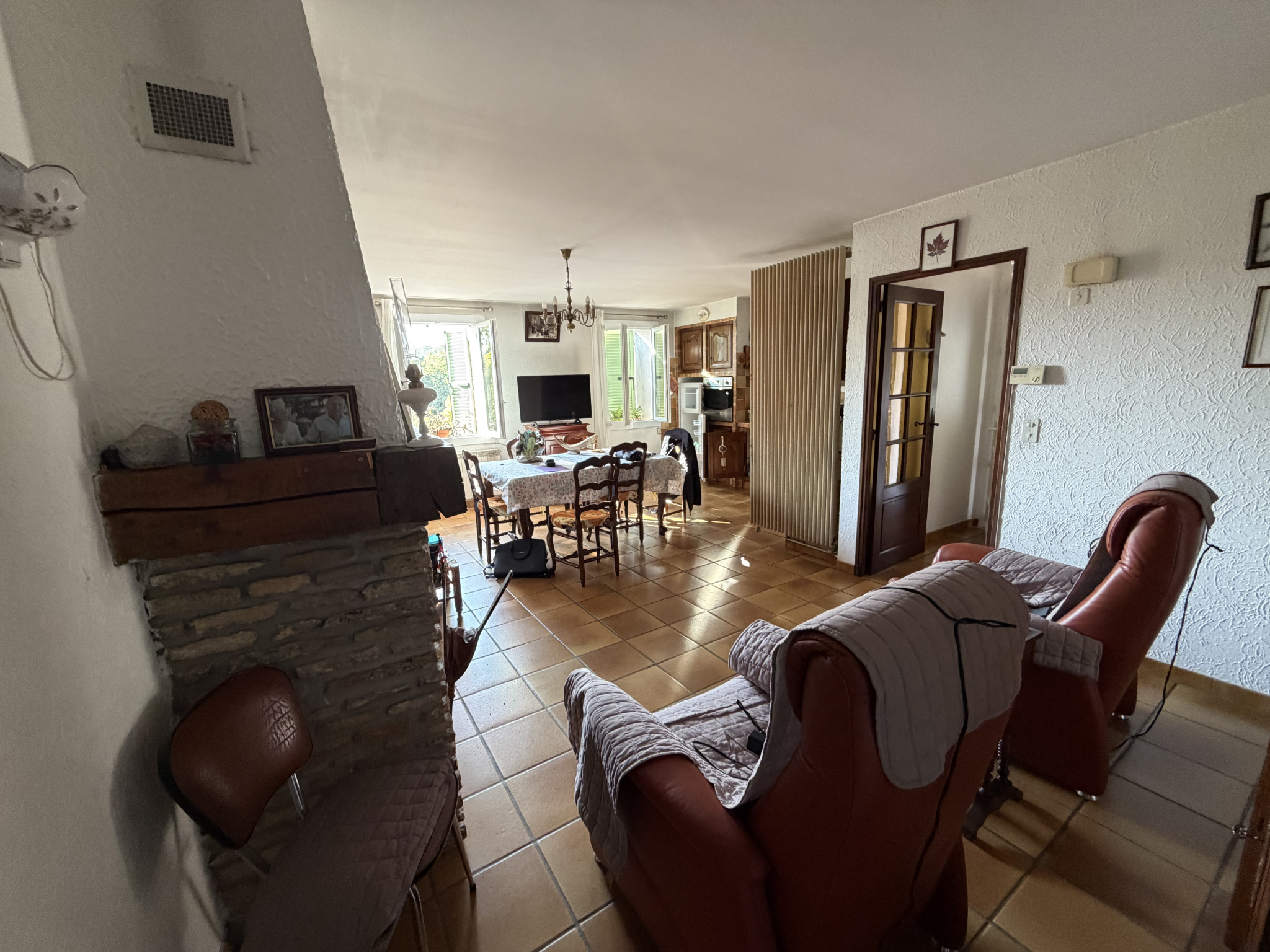 Les prestations comprennent le double vitrage et une pompe à chaleur électrique récente, assurant confort et économies d’énergie.