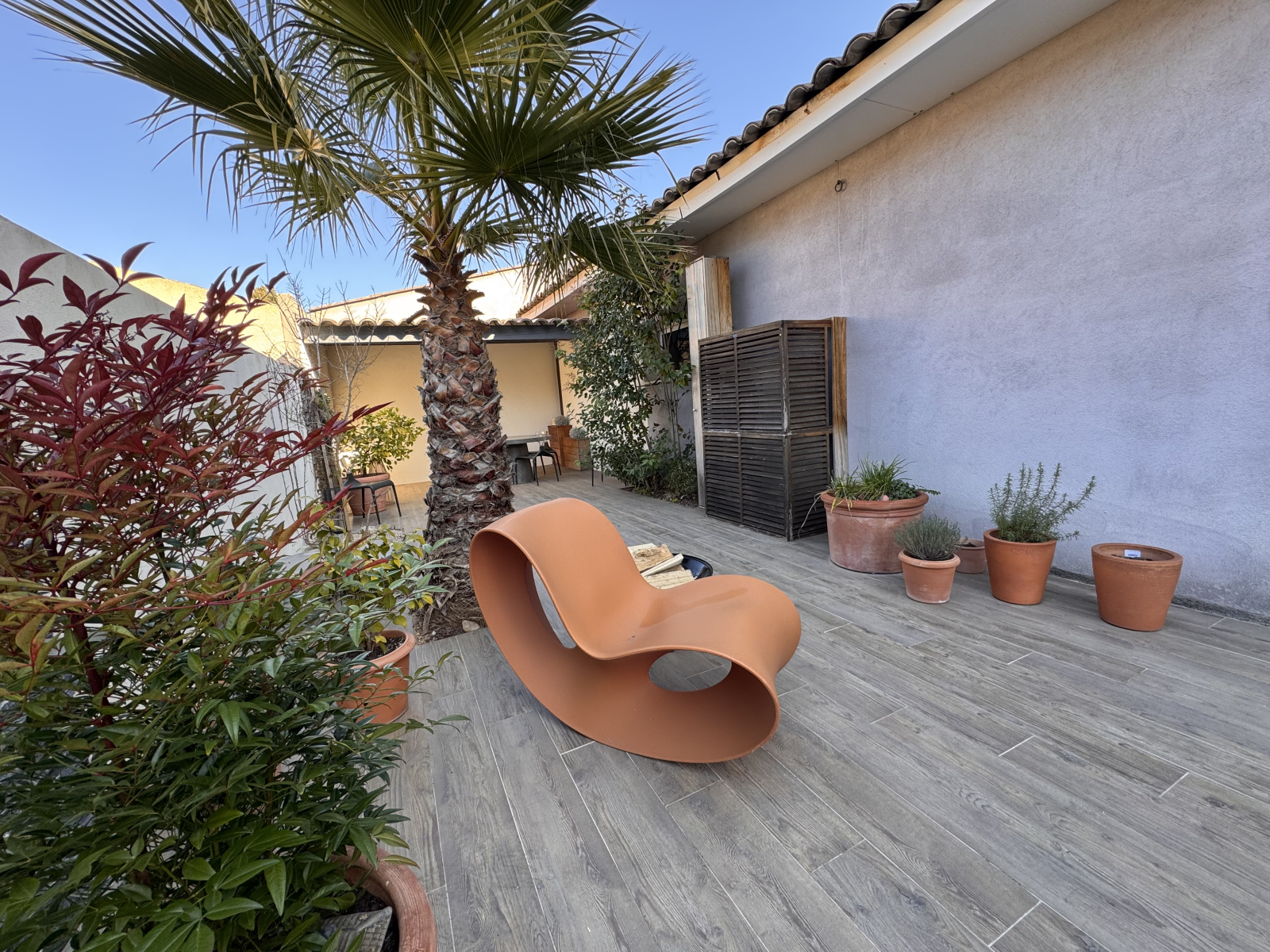 Dès l’entrée, deux portails en fer forgé donnent accès à une large terrasse qui ceinture l’ensemble de la propriété. Le terrain paysager de 854 m2, propose plusieurs espaces extérieurs soigneusement aménagés, mêlant coins ombragés et zones ensoleillées, parfaitement adaptés à la vie en plein air. Une piscine traditionnelle chauffée au style contemporain s’intègre harmonieusement dans cet environnement, accompagnée d’une cuisine d’été fonctionnelle, idéale pour les réceptions.
